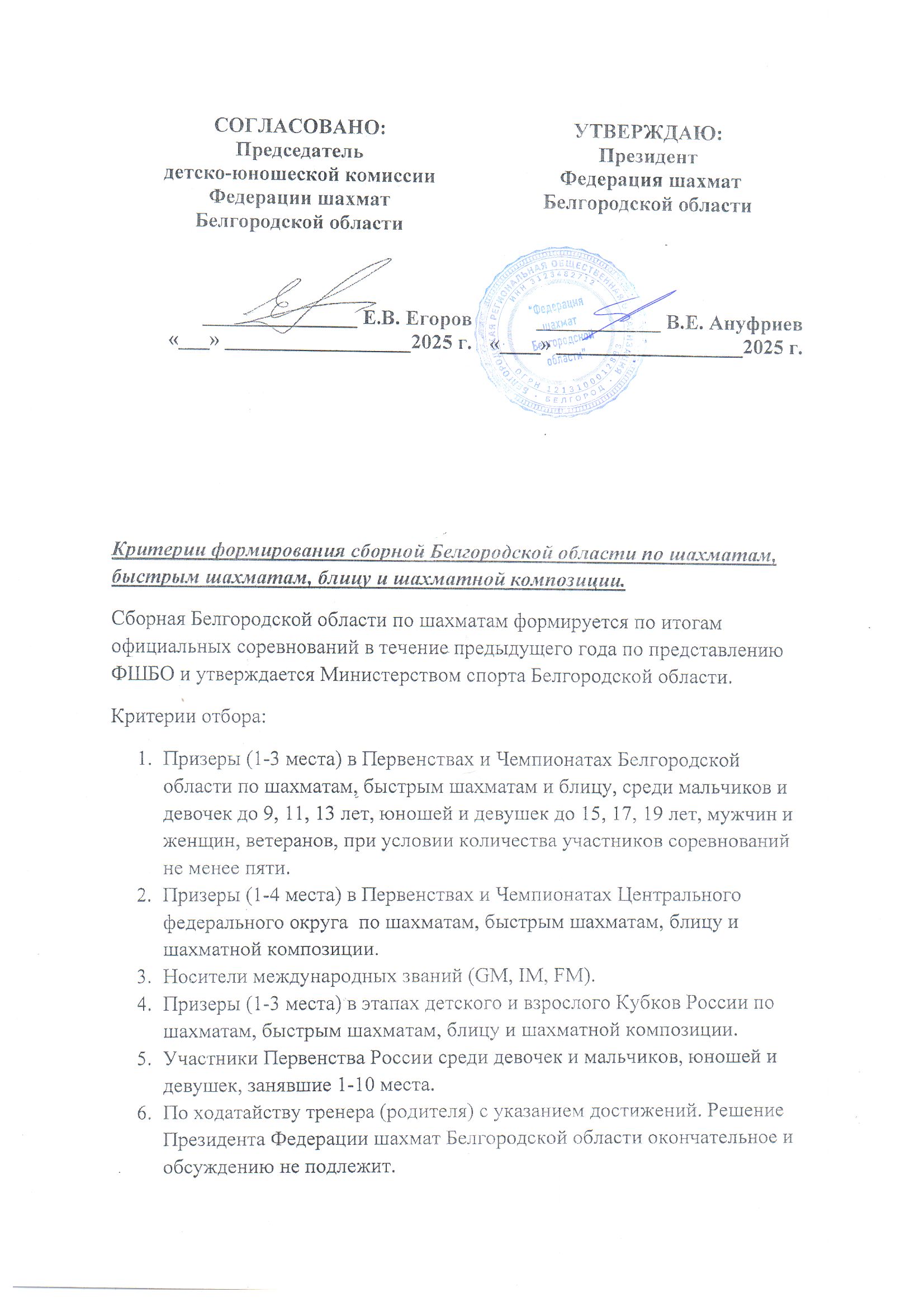 В состав сборной Белгородской области могут быть включены спортсмены, соответствующие одному или нескольким из следующих критериев: